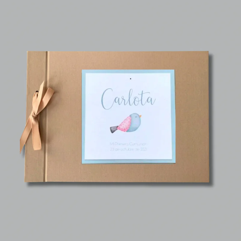 Este álbum artesanal está pensado para conservar los recuerdos de la comunión mucho más allá de ese día. En él se guardan las dedicatorias de familiares y amigos y, con el tiempo, también puede albergar fotos, recordatorios o pequeños detalles que ayudan a revivir la celebración tal y como se vivió.